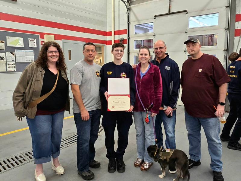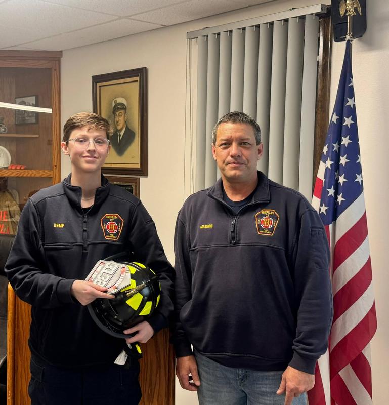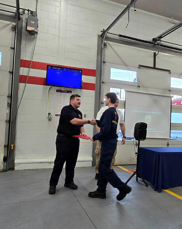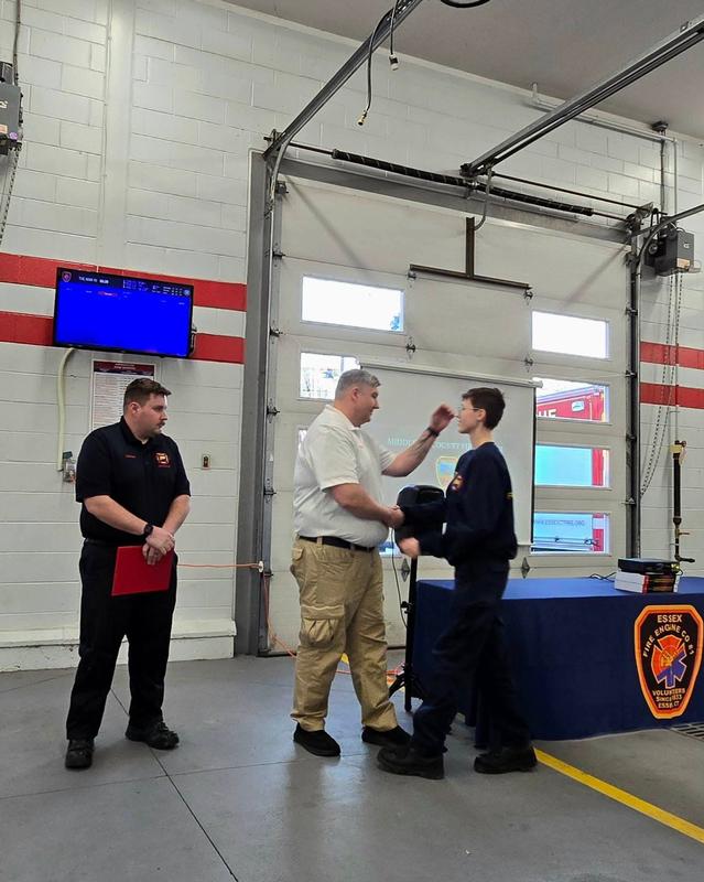 During tonight's meeting BVFD member Cassidy Kemp was presented a black helmet and shield after recently completing the requirements for the combined Firefighter 1 & 2 class. A graduation ceremony was held in Essex this past week by Middlesex County Fire School showcasing the accomplishments of the class, which added 3 certified firefighters to the town's roster.
